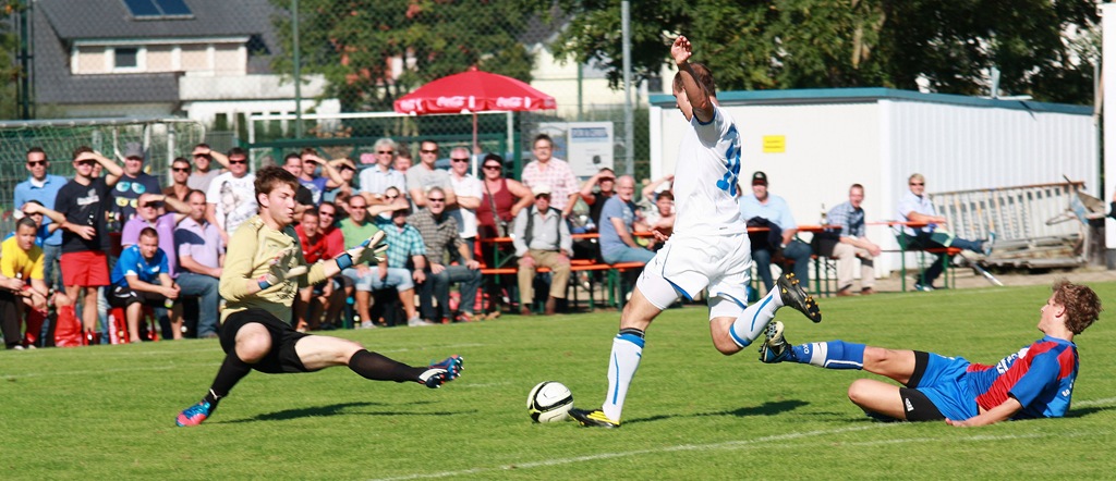 Am vergangenen Wochenende musste die SG Wasser/Kollmarsreute eine bittere und sehr enttäuschende Niederlage gegen die SG Nordweil/Wagenstadt einstecken. In einem temporeichen Spiel entschieden die Gäste das Spiel in Unterzahl mit einem Treffer in der 90.Spielminute. Dabei begann das Spiel für die SG sehr gut. Bereits nach wenigen Minuten erzielte Sergej Kohl die 1:0 Führung. Nach Vorarbeit von Artjom Gordijenko gelang dem Stürmer sein erster Saisontreffer. Die SG zeigte sich zu Beginn sehr spielstark und man kam immer wieder zu schnellen Ballgewinnen. Auch Torhüter Lars Lehmann konnte kurz drauf einen ersten Angriff der Gäste abwehren, als er im Eins-gegen-Eins siegreich blieb. Trotzdem musste man nach 9.Spielminuten den Ausgleich hinnehmen. Nach einem Eckball musste man den Ausgleich einstecken. Die Heim SG machte weiterhin Druck nach vorne und man hatte nach einem Freistoss von Jens Bohnenberger an den Pfosten Pech. Nach einer halben Stunde fiel dann die erneute Führung. Nach einem Freistoss von Frank Kocur wurde der Torhüter der Gäste von Jens Bohnenberger bedrängt und Sergej Kohl konnte zu seinem zweiten Treffer einschiessen. Bis zur Halbzeit hatte die SG noch die Möglichkeit, dass 3:1 zu erzielen.