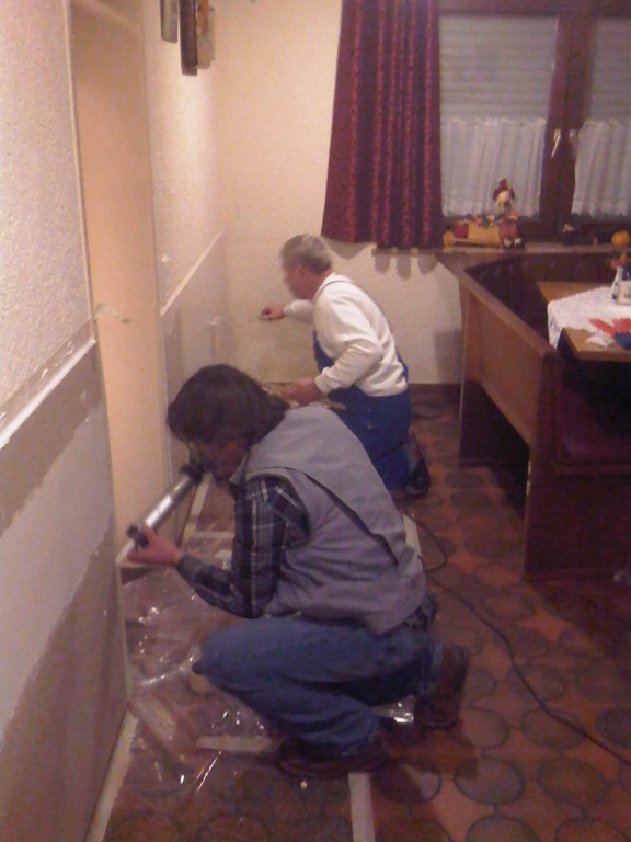 Die Duschdecke und die Fliesen werden erneuert. Hierfür werden noch Helfer gesucht.